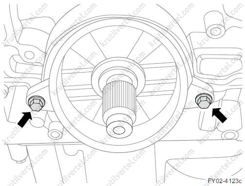 8. Викрутіть два кріпильні болти переднього сальника колінчастого валу.