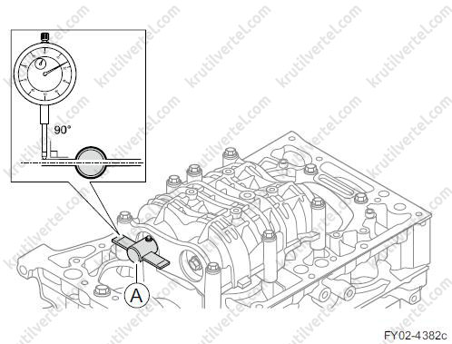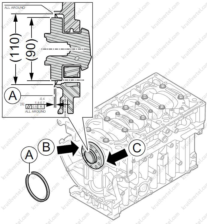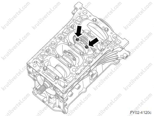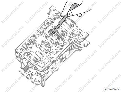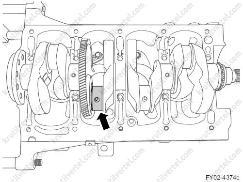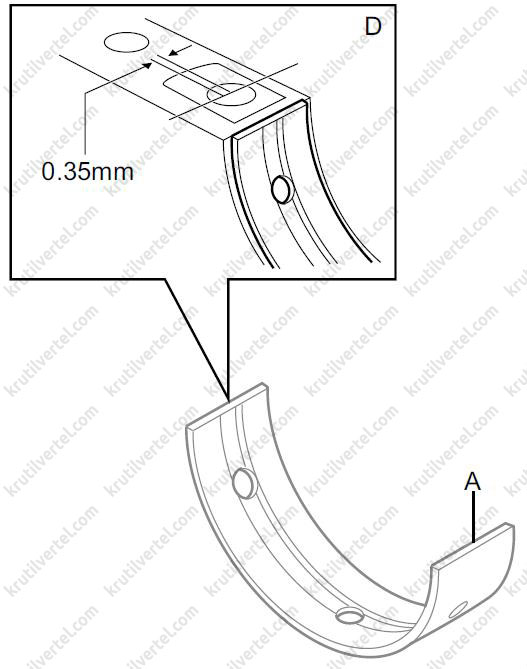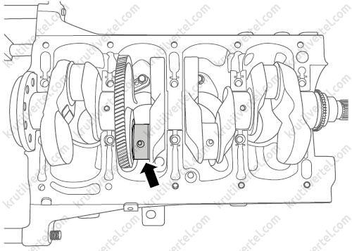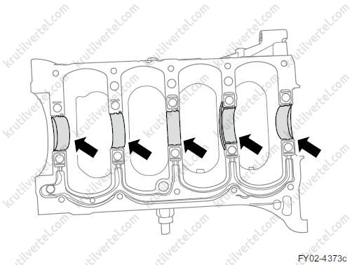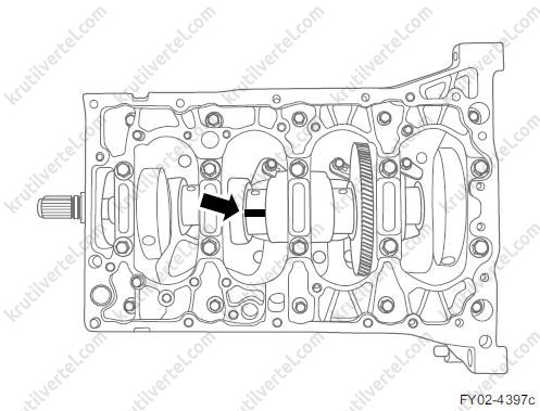 -Якщо величина зазору виходить за межі вказаного діапазону, замініть корінний підшипник колінчастого валу. За потреби замініть колінчастий вал. При заміні корінного підшипника колінчастого валу слід використовувати підшипник з таким самим номером.