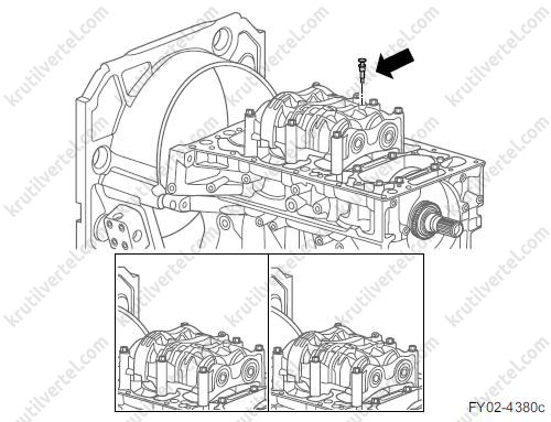 Картер та блок циліндрів поєднуються за допомогою особливих нерівностей на поверхнях сполучення, які можна легко пошкодити. За жодних обставин не кладіть будь-які предмети на поверхню картера.