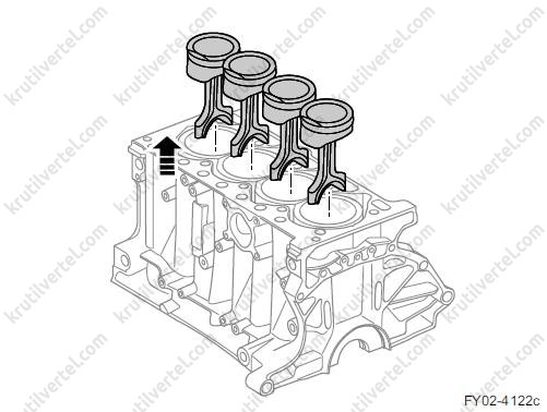 10. Зніміть поршні, шатуни та вкладки шатунних підшипників.