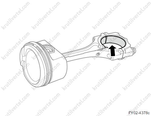 7. Перевірте отвір під поршневий палець у верхній головці шатуна на наявність тріщин. У разі виявлення дефектів замініть шатун.