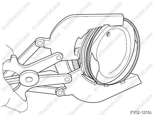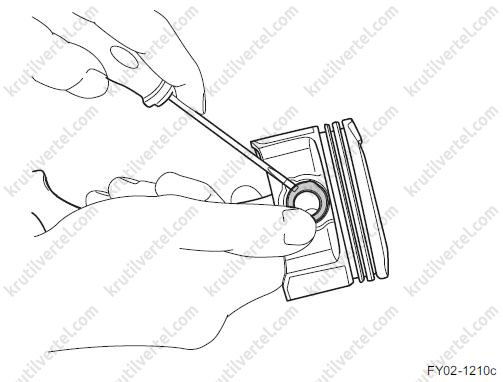 - При ручному складанні можна використовувати викрутку з плоским наконечником. При складанні будьте обережні, щоб не подряпати поверхню отвору під поршневий палець, і використовуйте спеціальні складальні пристрої.