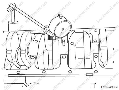 4. Виміряйте радіальне биття корінної шийки колінчастого валу за допомогою циферблатного індикатора.