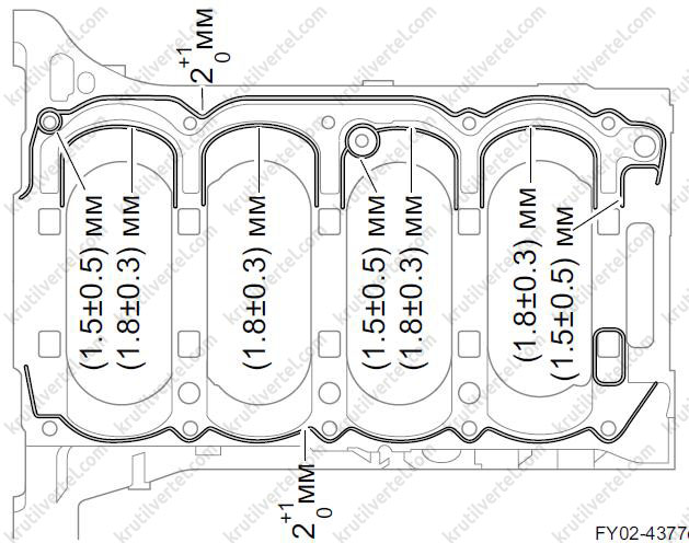 Якщо з моменту нанесення герметика та до встановлення переднього сальника колінчастого валу пройшло більше 25 хвилин, перед встановленням сальника видаліть надлишок герметика. Видаляти герметик не потрібно, якщо після нанесення пройшло менше 25 хвилин.