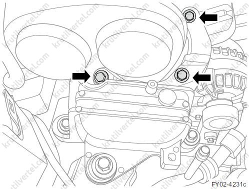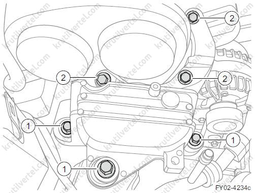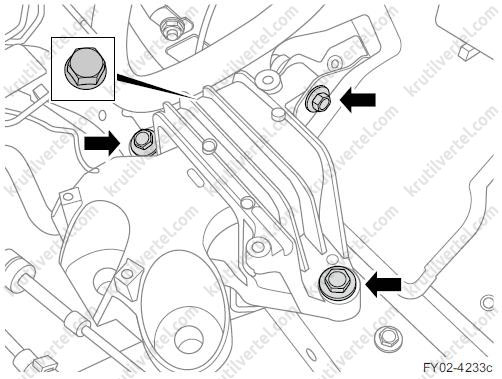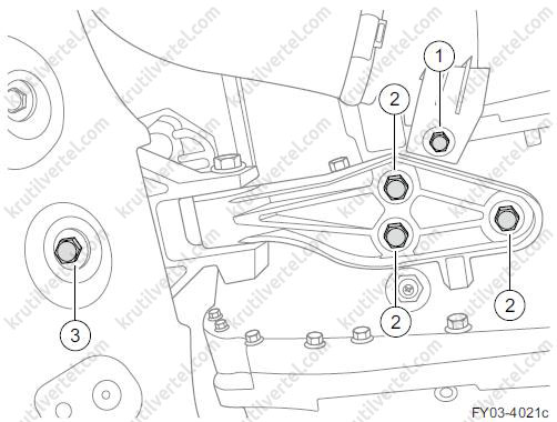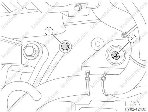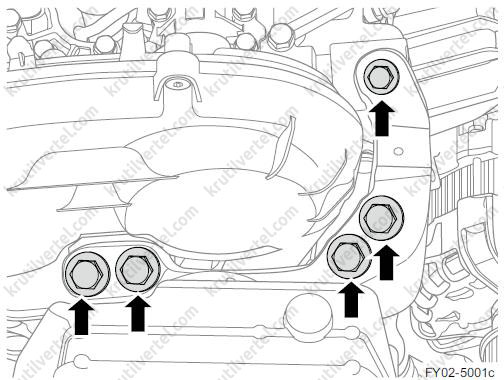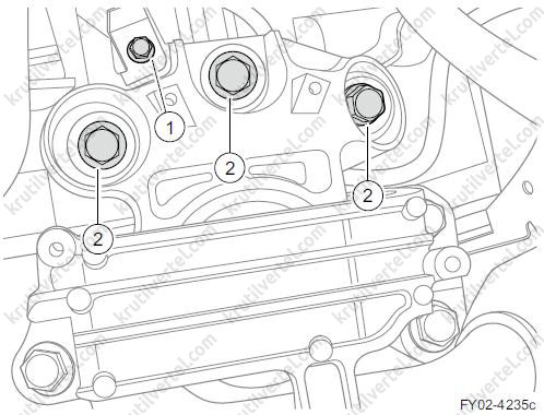 - При установці всі чотири настановні болти повинні увійти в отвори декоративного кожуха двигуна.