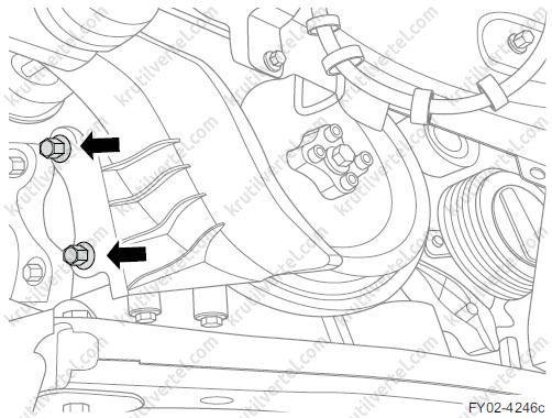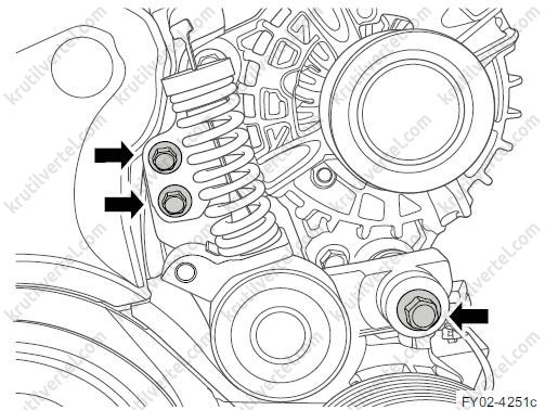 8. Викрутіть два болти з бризковика приводного ременя і зніміть бризковик.
