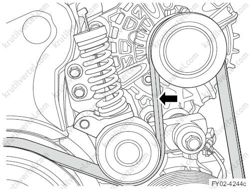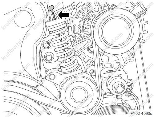 2. Вийміть стопорний штифт і послабте зусилля на ключі, щоб натягувач повернувся у вихідне положення і натягнув ремінь.