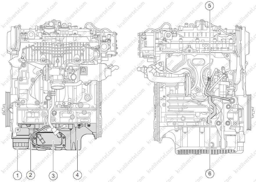 Масляний фільтр: Олійний фільтр служить для очищення моторного масла і розташований у нижній частині двигуна з правого боку. Моторне масло надходить у масляний фільтр з масляного піддону, очищається в ньому від забруднень і надходить до різних механізмів двигуна. Потім олія повертається назад у масляний піддон.