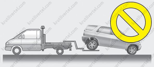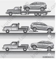 Буксирування повнопривідного автомобіля необхідно виконувати за допомогою буксирувального візка або кузова-платформи, щоб усі колеса не стикалися з поверхнею дороги.
