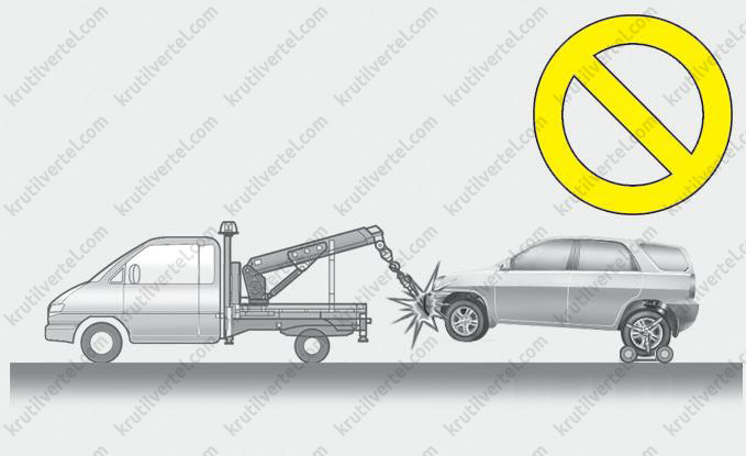 - Не буксуйте автомобіль задом наперед, залишивши передні колеса на землі: так можна пошкодити автомобіль.