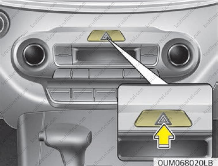 - Аварійна світлова сигналізація діє незалежно від руху автомобіля.