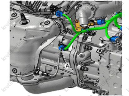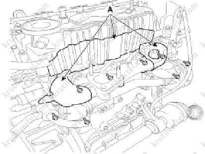 3. Зніміть теплозахисні екрани випускного колектора (А).