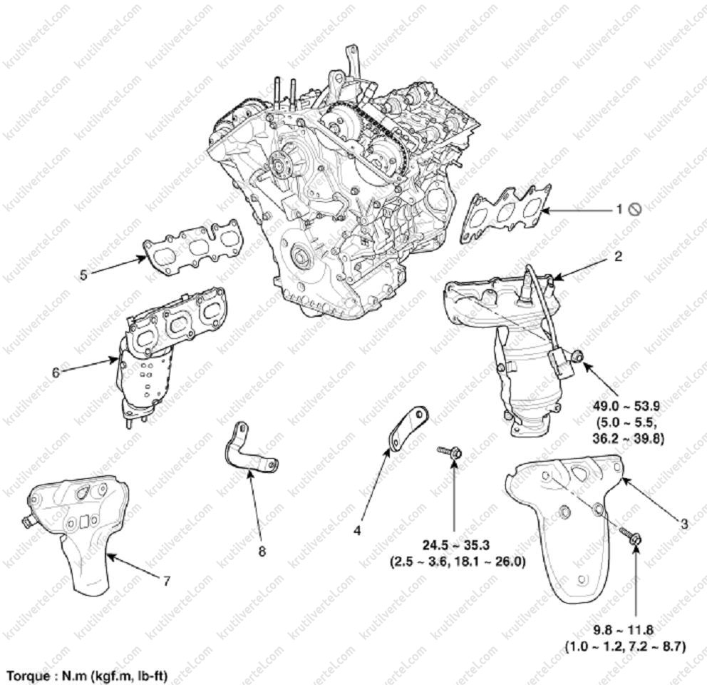 регулювання клапанів Kia Sorento, система впуску двигуна Kia Sorento, система випуску газів Kia Sorento, система випуску Kia Sorento, система впуску Kia Sorento
