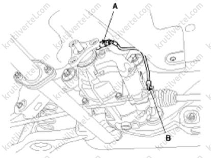 6. Від'єднати роз'єм датчика тиску (А) та роз'єм гідравлічного приводу (В).