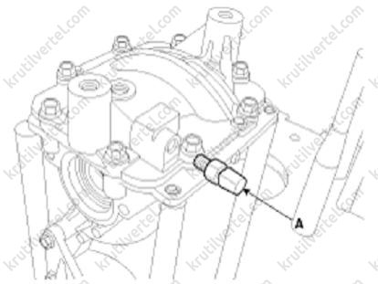 2. Викрутити пробку зливного отвору (А) і злити масло із задньої головної передачі.