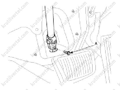 9. Відвернути болт (А) та від'єднати універсальний шарнір від валу кермового редуктора.