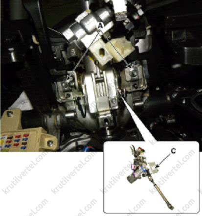 11. Відвернути дві кріпильні гайки (А) і зняти рульову колонку (С).