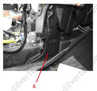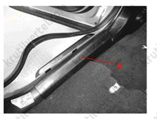 1. Використовуючи викрутку або спеціальний шпатель, зняти накладку порога передніх дверей (А).
