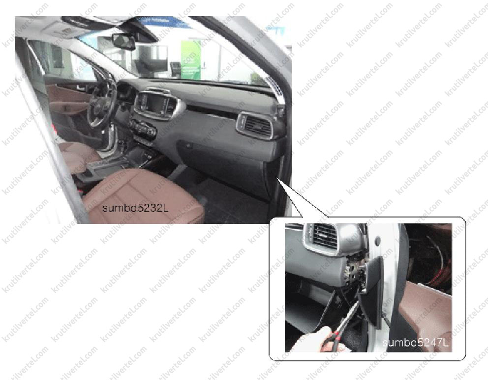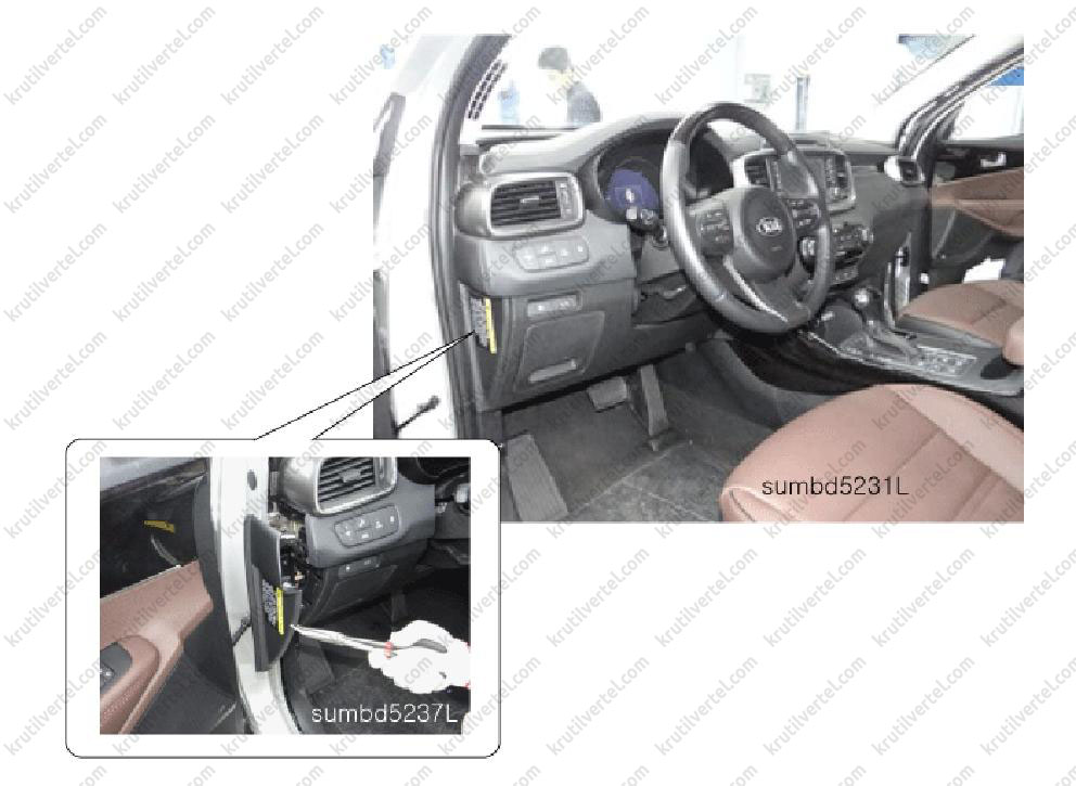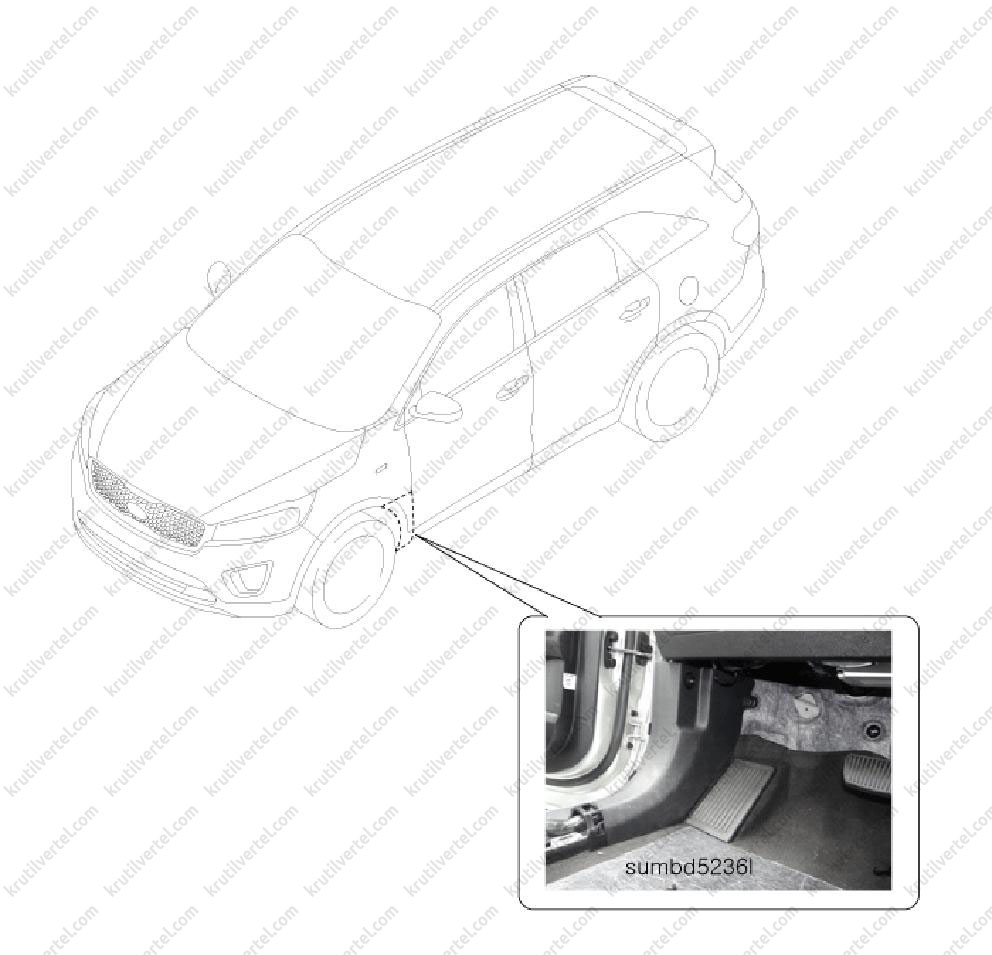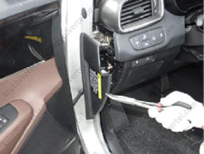 1. Зняти накладку порога передніх дверей з відповідного боку автомобіля (див. вище).