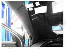 6. Використовуючи викрутку або спеціальний шпатель, зняти нижнє облицювання центральної кузовної стійки (А).