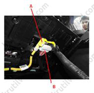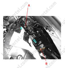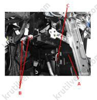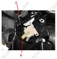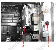 - З боку водія: від'єднати роз'єм приводів вибору режимів (А) та температурної заслінки (В).