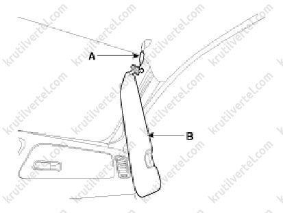 - Від'єднати роз'єм (А) та повністю зняти сонцезахисний козирок (В).