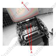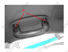 6. Видалити ковпачки і викрутити гвинти кріплення (А), після чого зняти стельовий поручень (В). Аналогічним чином зняти решту стельових поручнів.