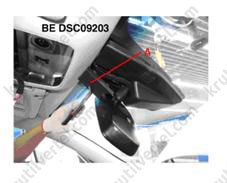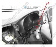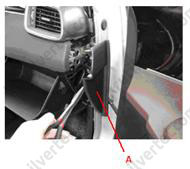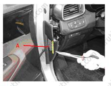 4. Використовуючи викрутку або спеціальний шпатель, зняти бічне облицювання передньої частини салону (А).