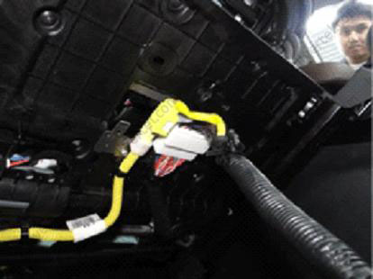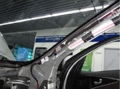 - При встановленні стельового джгута проводів нанести на стельову обшивку нанести термоклей по всій довжині джгута за допомогою спеціального пістолета.