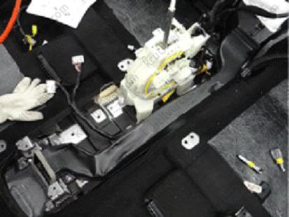 9. Відвернути гвинти та болти кріплення, після чого зняти підлогову консоль у зборі.