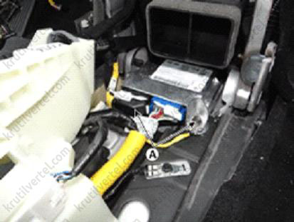 12. Від'єднати роз'єм блоку запобіжників пасажирського салону (А).