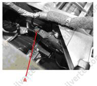 5. Відвернути болт і від'єднати задній повітропровід (А).