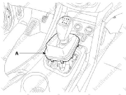 1. Від'єднати пильник важеля перемикання передач (А).