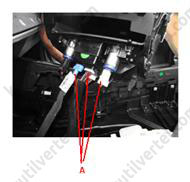 17. Від'єднати колодки стельового джгута проводів (А).