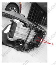 6. Відкрутити гвинти та болти кріплення та зняти задню частину консолі в зборі (А).