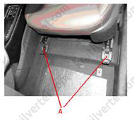 1. Видалити кришки та відвернути передні (А) та задні (В) болти кріплення переднього сидіння (А).