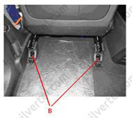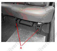 6. Відвернути задні болти кріплення сидінь другого ряду (А).