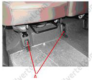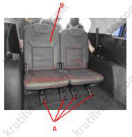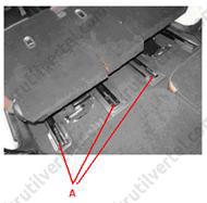 5. Видалити кришки та відвернути передні болти кріплення (А), після чого зняти сидіння третього ряду через дверний проріз багажного відсіку.