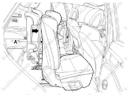 2. Натисніть праве сидіння другого ряду (А) до упору вперед.
