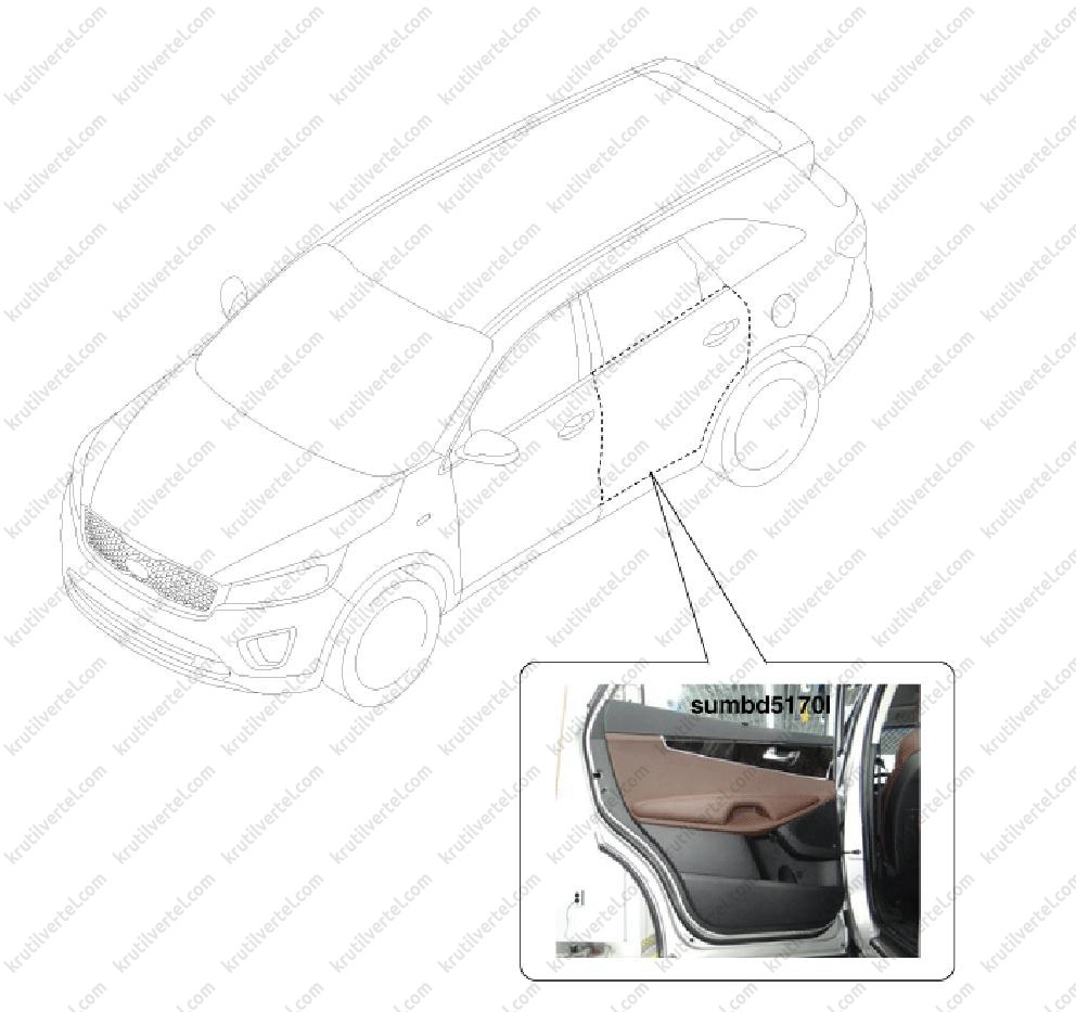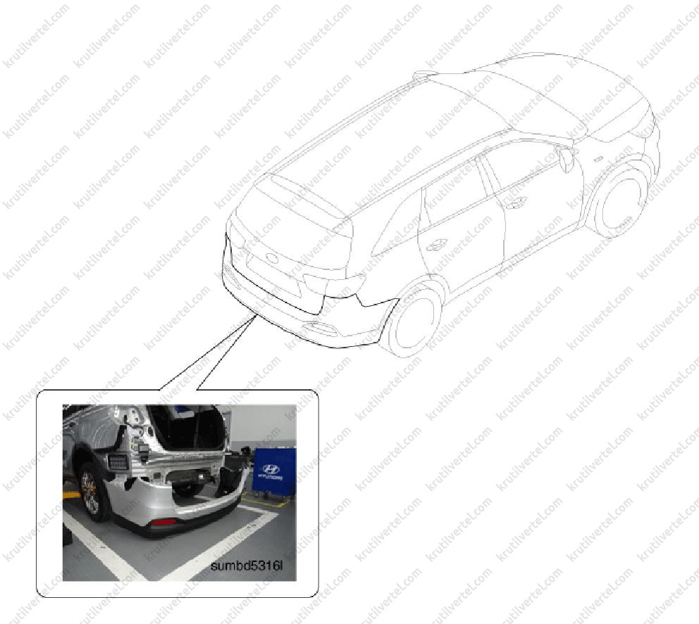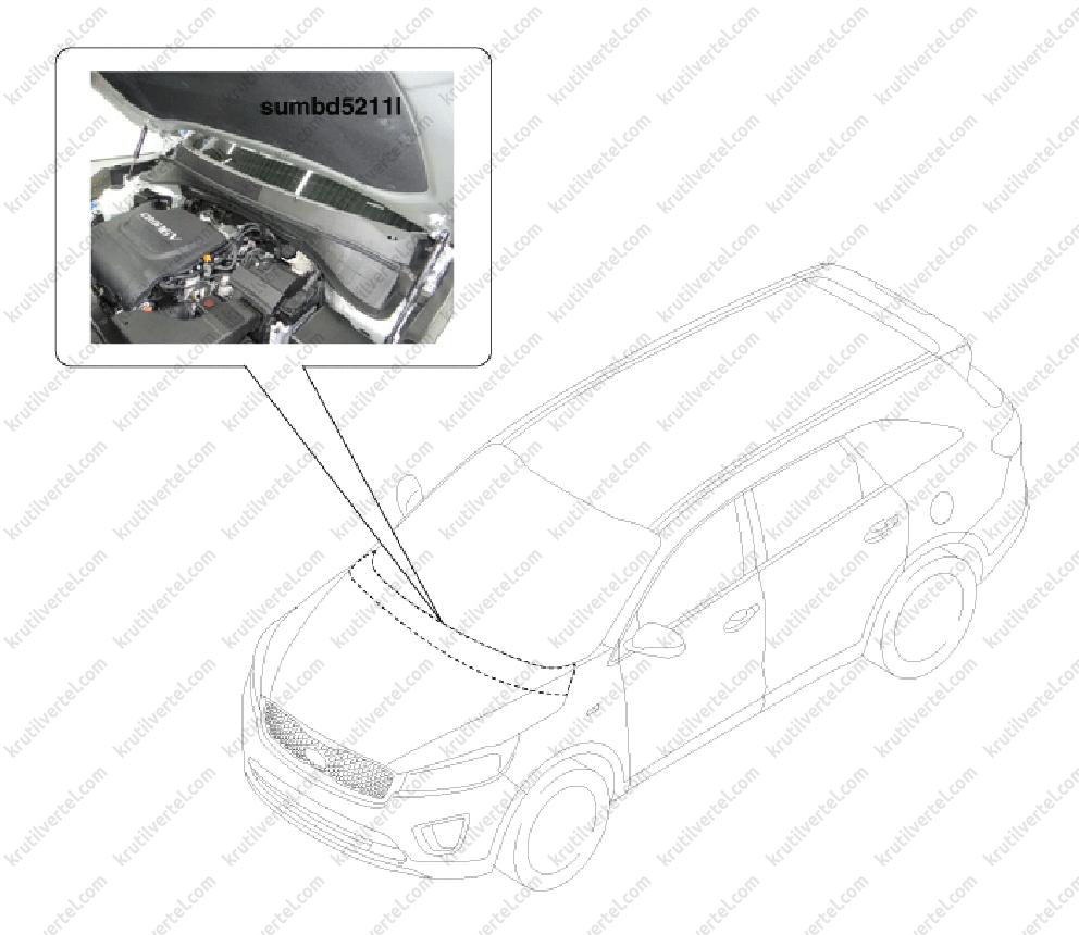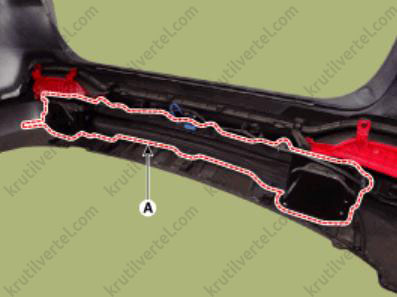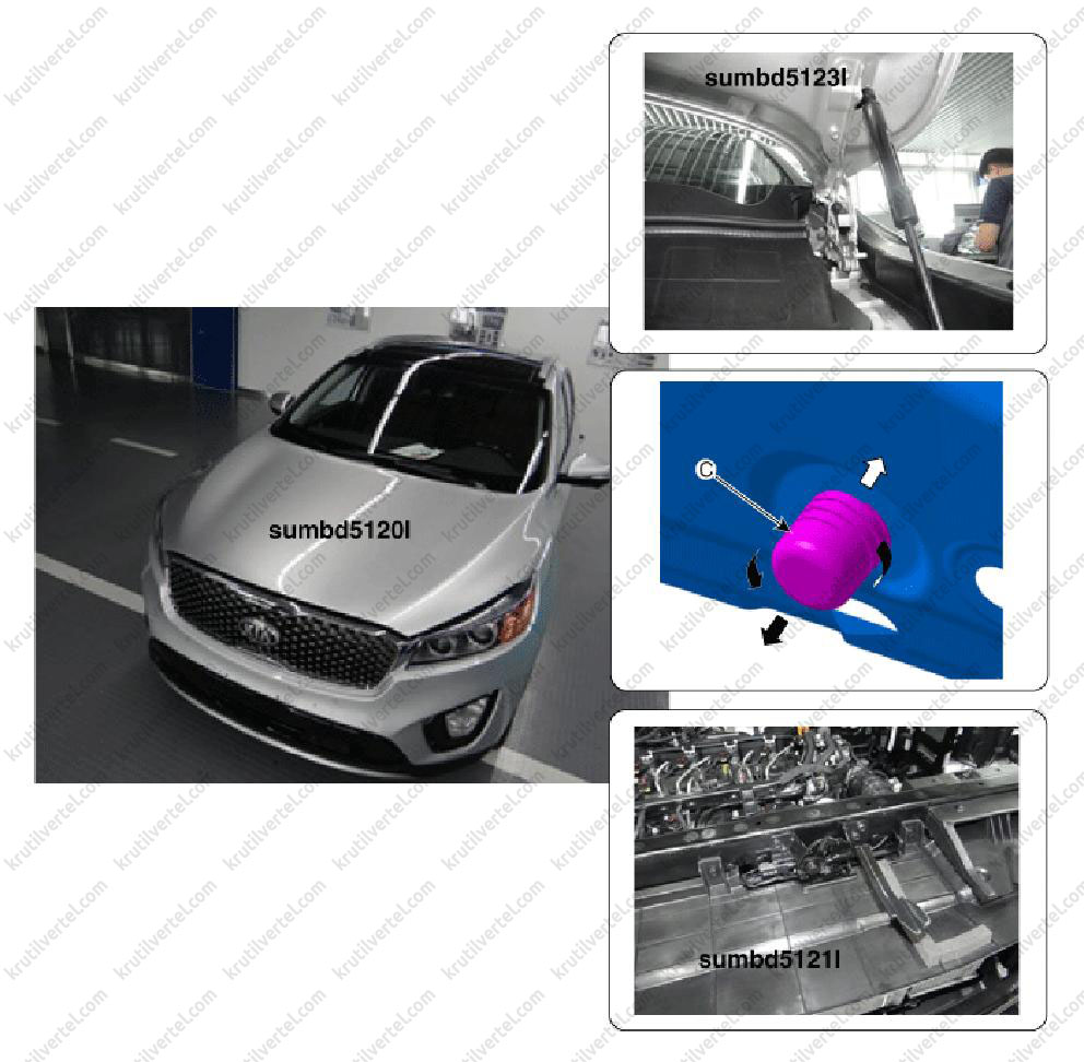 ![Послабити болти кріплення навісів (А), після чого відрегулювати положення дверей багажника, переміщуючи її вгору або вниз, вправо або вліво екстер'єр KIA Sorento Prime з 2018 року, екстер'єр Кіа Соренто Прайм з 2018 року]()