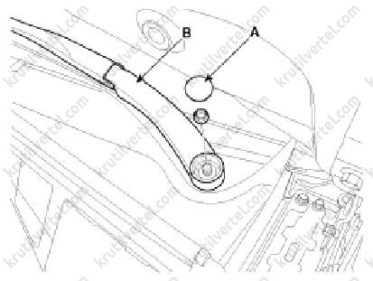 1. Видалити кришки (А) та відвернути кріпильні гайки, після чого зняти важелі склоочисників.