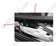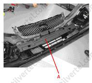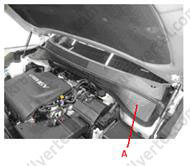 3. Від'єднати затискачі та зняти панель верхньої частини капота (А).