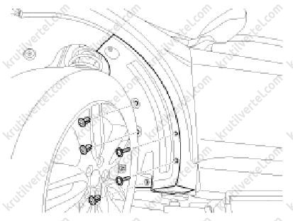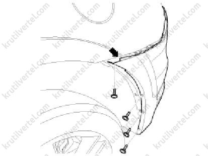 3. Відвернути гвинти кріплення та монтажні кліпси переднього підкрилка.
