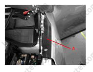 6. Видалити монтажні затискачі, після чого зняти бічну кришку переднього крила (А).