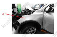7. Відвернути гвинти, болти та гайки кріплення, після чого зняти переднє крило (А) з автомобіля.