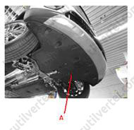 2. Відвернути гайки кріплення та видалити кліпси, після чого зняти задній підкрилок (А).