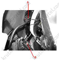 4. Від'єднати головний роз'єм джгута проводів переднього бампера (А), а також роз'єм передніх протитуманних фар (В).