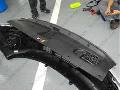 1. Відвернути болти кріплення та видалити монтажні кліпси верхньої кришки радіатора з боку моторного відсіку.
