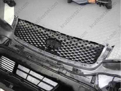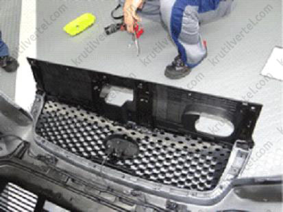 5. Відвернути гвинти кріплення та відчепити фіксатори, підчепивши їх плоскою викруткою або спеціальним знімачом, після чого зняти решітку радіатора з облицювання переднього бампера.