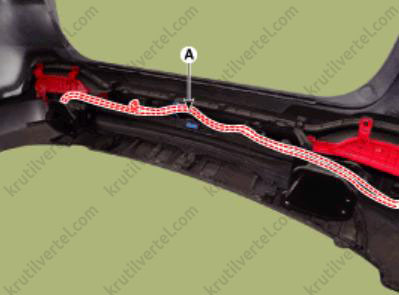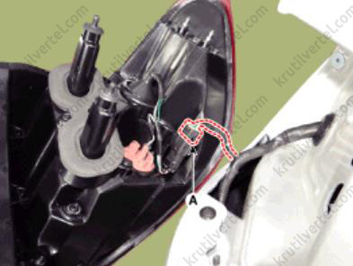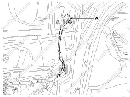 8. Від'єднати роз'єми та зняти джгут проводів дверей багажника (А).